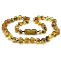 *As peças de âmbar são produzidas artesanalmente. As contas são presas uma a uma - assim, se o colar de âmbar arrebentar, apenas uma conta cai, reduzindo o risco para a criança.